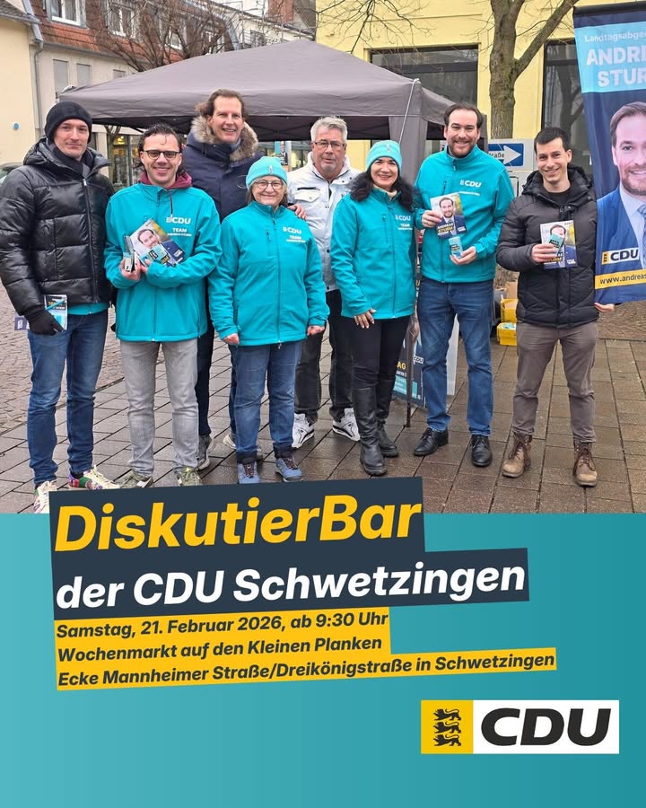 Wir Christdemokraten lieben unsere Heimat und wollen unsere Stadt gemeinsam mit Ihnen – den Bürgerinnen und Bürgern – gestalten. Für eine bürgernahe Politik, die den Menschen zuhört und sich um die Anliegen vor Ort kümmert, für Pragmatismus statt Ideologie, für eine ausgewogene Politik der Mitte, die das Allgemeinwohl im Blick hat: dafür stehen wir als CDU. Wir wollen nicht alles anders, aber einiges noch besser machen. Auf den folgenden Seiten möchten wir Sie über unsere Arbeit im Stadtverband sowie über unsere Positionen und Ideen für Schwetzingen informieren. Haben Sie Anliegen oder Themen? Kontaktieren Sie uns gerne, wir freuen uns auf den Dialog mit Ihnen.